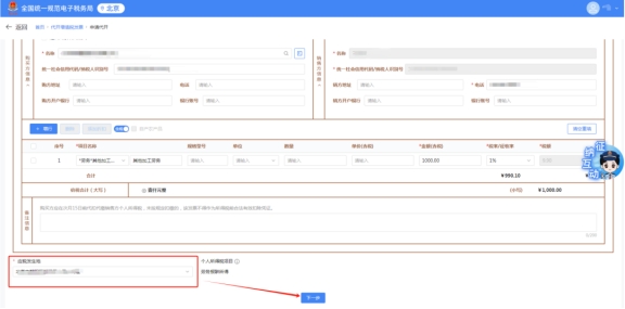 信息填寫完,選擇應稅發(fā)生地,然后點擊下一步。