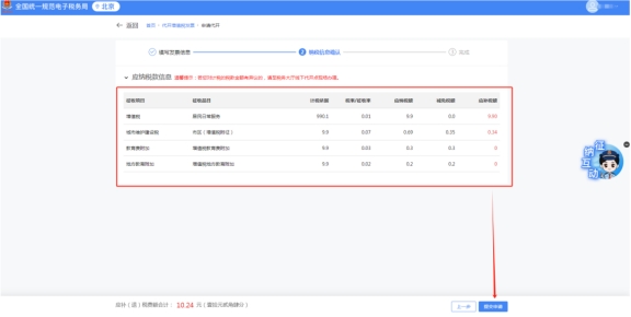 如需在發(fā)票票面?zhèn)渥⑵渌畔?,可在“備注信息”一欄填寫需要備注的內容,否則無需填寫。點擊“下一步”,進入納稅信息確認頁面。