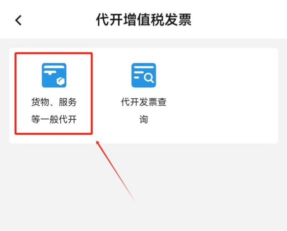 點擊“貨物、服務等一般代開”(目前移動端APP尚不支持房屋出租發(fā)票代開,如有需要您可通過電腦端線上辦理,具體操作步驟請查看個人代開房屋發(fā)票,新電子稅局的操作流程來啦!)。