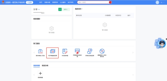 進入后,點擊熱門業(yè)務-代開增值稅發(fā)票。