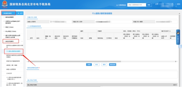 三、稅費(fèi)申報(bào)及繳納—個(gè)人股東變動(dòng)情況報(bào)告表(扣繳義務(wù)人)錄入。