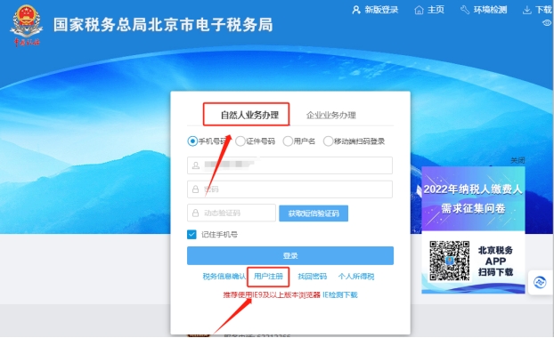 一、點(diǎn)擊北京市電子稅務(wù)局自然人業(yè)務(wù)辦理——點(diǎn)擊用戶注冊,完成個(gè)人賬戶注冊,注冊成功后登錄自然人業(yè)務(wù)辦理進(jìn)入后按照提示做實(shí)名認(rèn)證。