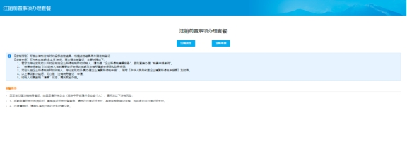第二步:點(diǎn)擊【注銷(xiāo)預(yù)檢】按鈕可對(duì)未辦結(jié)事項(xiàng)進(jìn)行展示,處理完未辦結(jié)事項(xiàng)后,再辦理注銷(xiāo)登記。