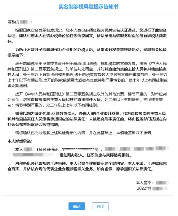 七、實(shí)名制涉稅風(fēng)險(xiǎn)提示告知書(shū)頁(yè)面。