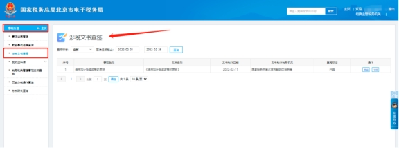 第七步:納稅人可在電子稅務(wù)局的“我要查詢”—“涉稅文書(shū)查簽”模塊中簽收《清稅證明》通知書(shū)。在操作列中查看《清稅證明》具體信息。