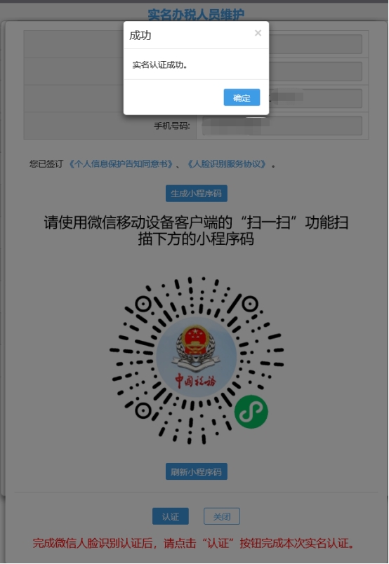 十、人臉識(shí)別頁(yè)面(掃描二維碼)完成后點(diǎn)擊“認(rèn)證”。