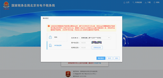 9月1日前也可通過(guò)點(diǎn)擊“跳過(guò)驗(yàn)證”按鈕,跳過(guò)人員登錄方式,直接進(jìn)入電子稅務(wù)局首頁(yè)界面;