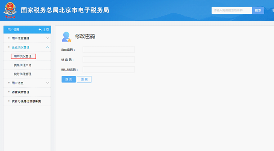 3)? 企業(yè)納稅人審核,企業(yè)登錄電子稅務(wù)局,在我的信息----用戶管理里面,點(diǎn)擊打開(kāi)企業(yè)授權(quán)管理,選擇用戶授權(quán)管理,點(diǎn)擊打開(kāi);