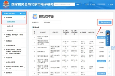 二、稅費申報及繳納—申報清冊—按期應(yīng)申報頁面在右上角點擊“重置申報清冊”,然后帶出新的報表后請再填寫申報即可。
