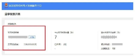 提示:系統(tǒng)每月初將根據(jù)您公司的風險程度、納稅信用級別、實際經營情況等因素自動為您計算您公司的發(fā)票總額度。