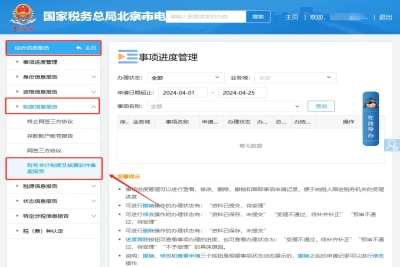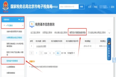 二、我要查詢—一戶式查詢—稅務基本信息查詢—財務會計制度備案查詢。